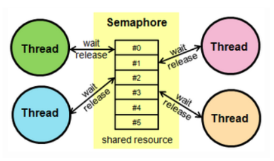 자원을 얻는 P 연산과 자원을 반납하는 V 연산 과정을 통해 이뤄지는 자료형이며 그 값은 공유 자원의 개수를 의미한다.